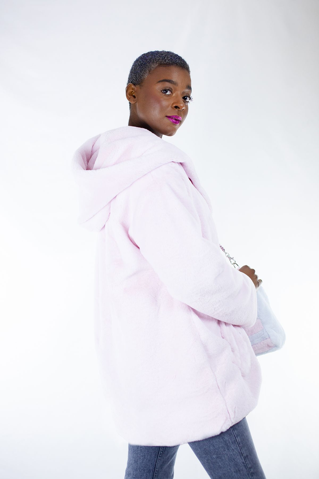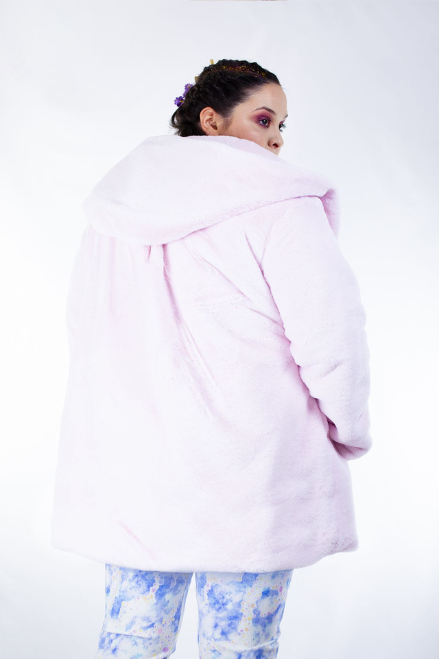 La version fluffy du manteau Kaori est un parfait manteau pour les jours froids d'hiver. tout doux et super chaud, avec sa capuche géante on se sent comme sous sa couette. C'est un manteau oversize, en fausse fourrure pastel, doublée avec du faux mouton blanc. En fait, c'est un peu un petit cocon douillet qui protège du monde extérieur.