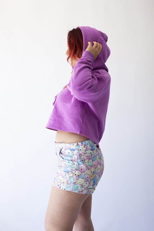 Niki est un short court et large avec un revers en bas ; parfait pour les beaux jours. Il a un élastique à l'intérieur de la ceinture qui lui permet de s'adapter exactement à votre tour de taille ; il suffit de tirer dessus et de le bloquer à l'aide des petits boutons plats qui se trouvent de chaque côté. Il peut donc facilement se porter taille basse, taille haute ou bien entre les deux, il suffit d'adapter la longueur de l'élastique à l'endroit où vous voulez qu'il se tienne. La matière utilisée est un jean un peu fin et élastique, ce qui lui donne un confort optimal.